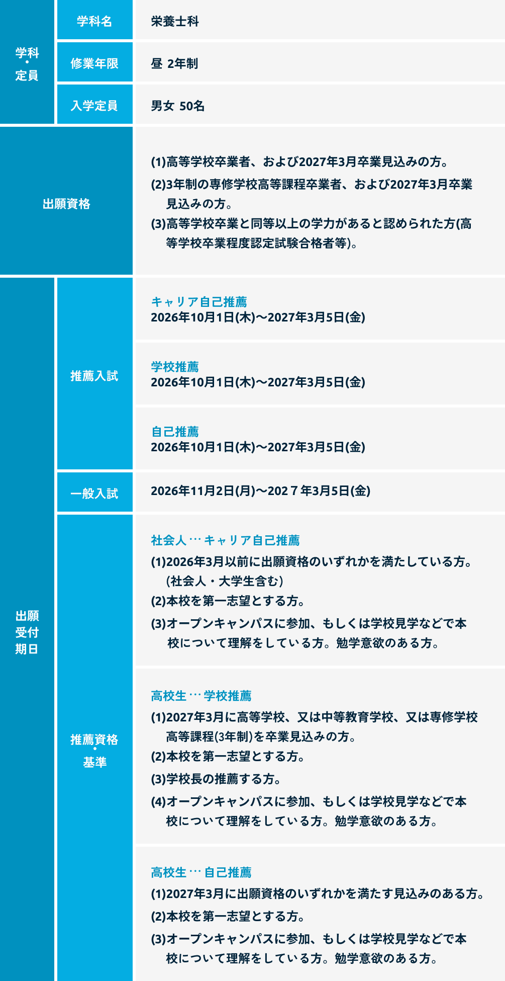 出願資格2、3年制の専修学校高等課程卒業者、および2026年3月卒業見込みの方。
